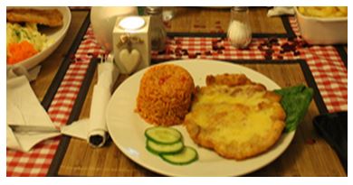 I had breaded chicken fillet with cheese, mashed potatoes and red fried rice. The chicken was really tasty with just the right amount of flavour and softness. The cheese on it gave it that extra heavenly taste and it was just pure goodness. As for the potatoes, they were properly mashed and seasoned and it just blended so well with the chicken and felt so succulent in my mouth. The red fried rice for me tasted exactly like what we Nigerians call Jollof rice. It was also well prepared and flavoured (I would have loved it to have a bit more chilli though).