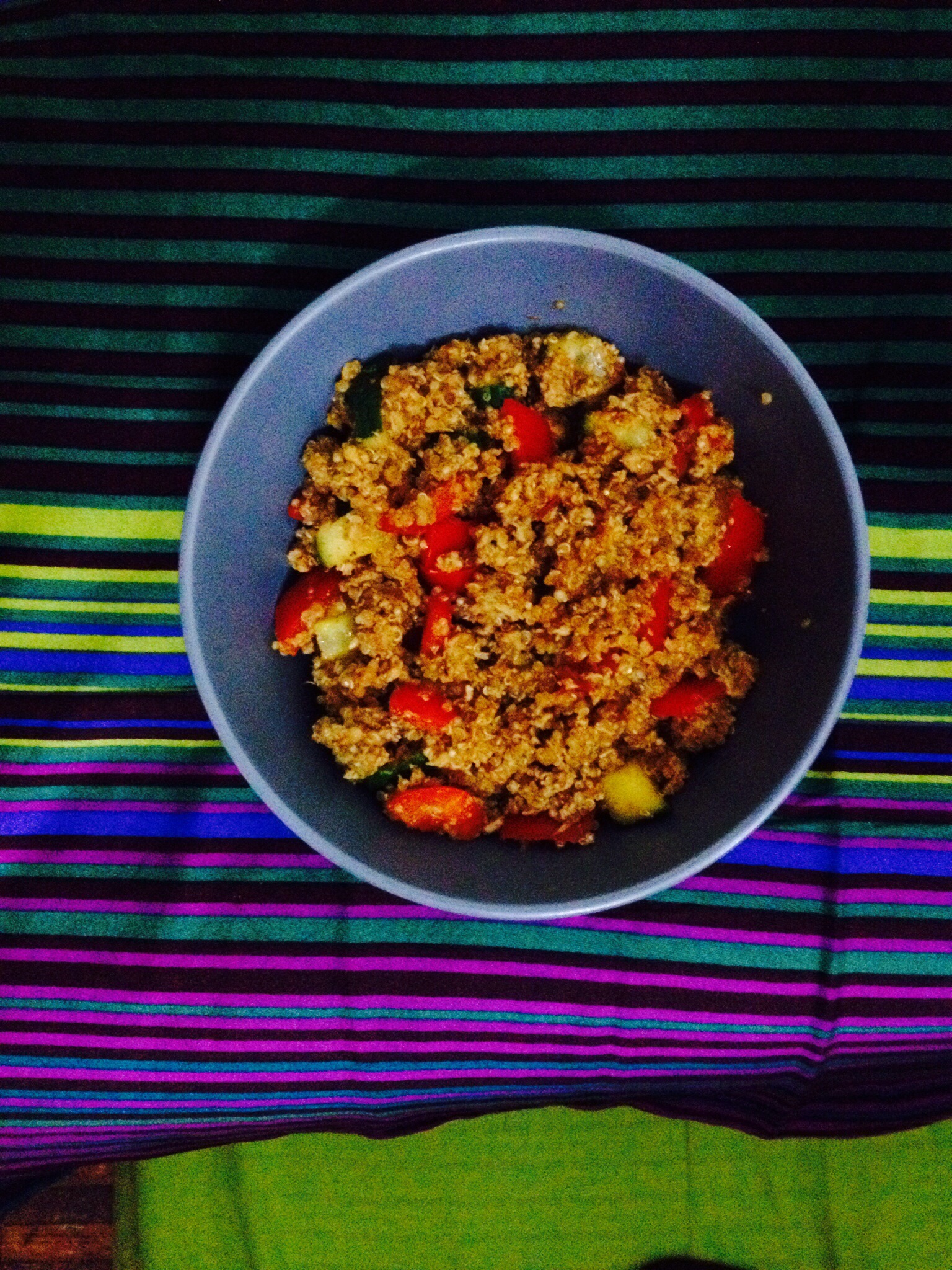 The chicken can also be used as a sauce for pasta. I have also eaten it with quinoa. I preferred it with the pasta though. With the quinoa, you can’t really tell that there’s chicken in it.