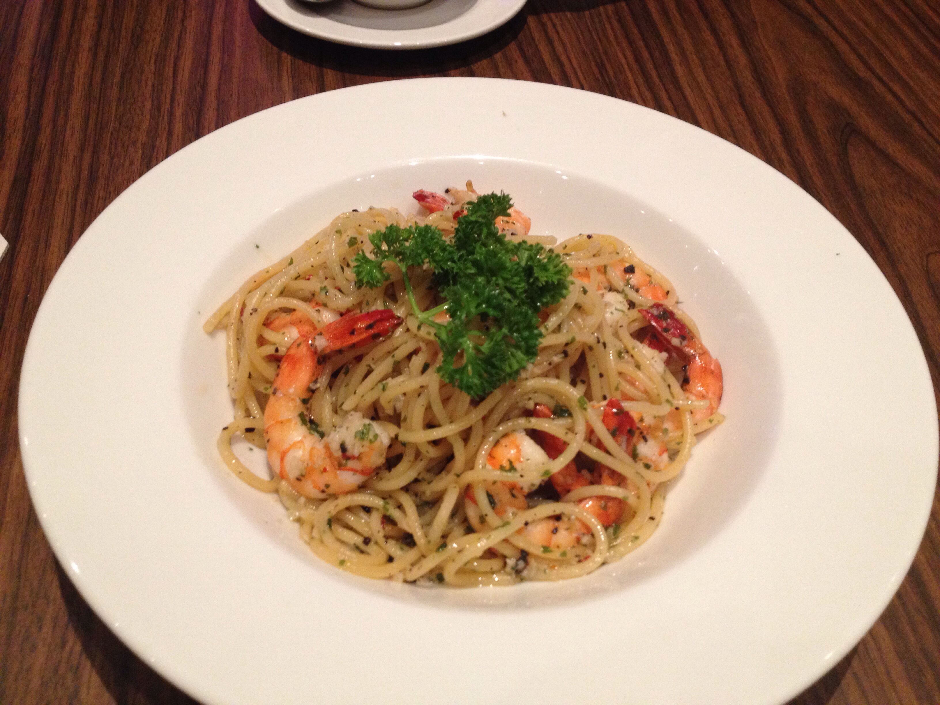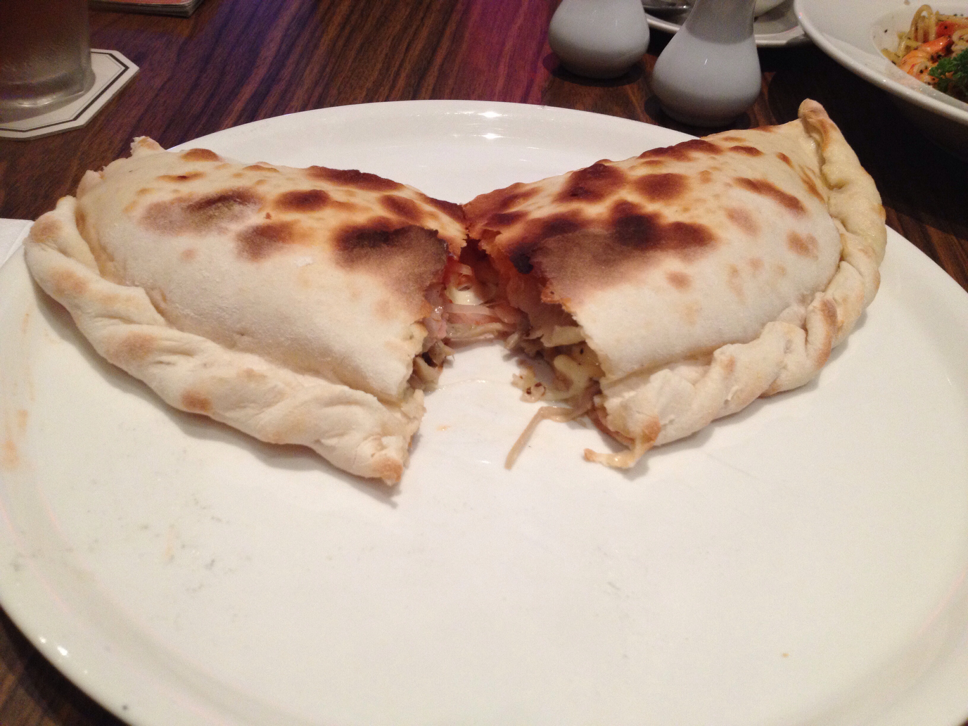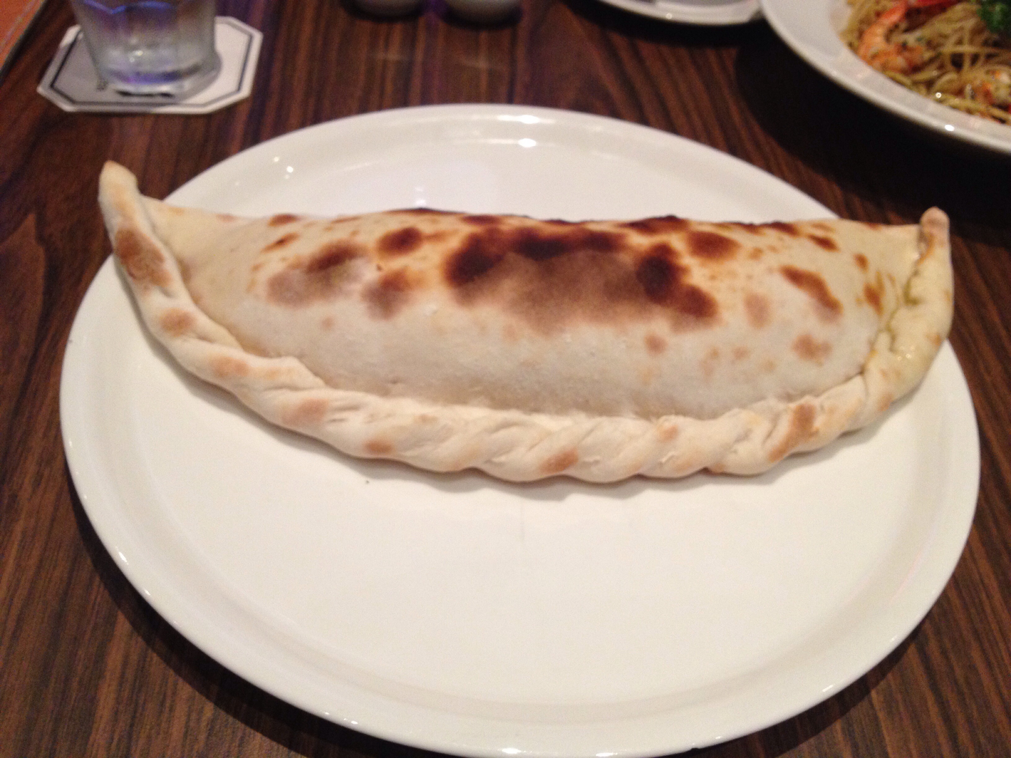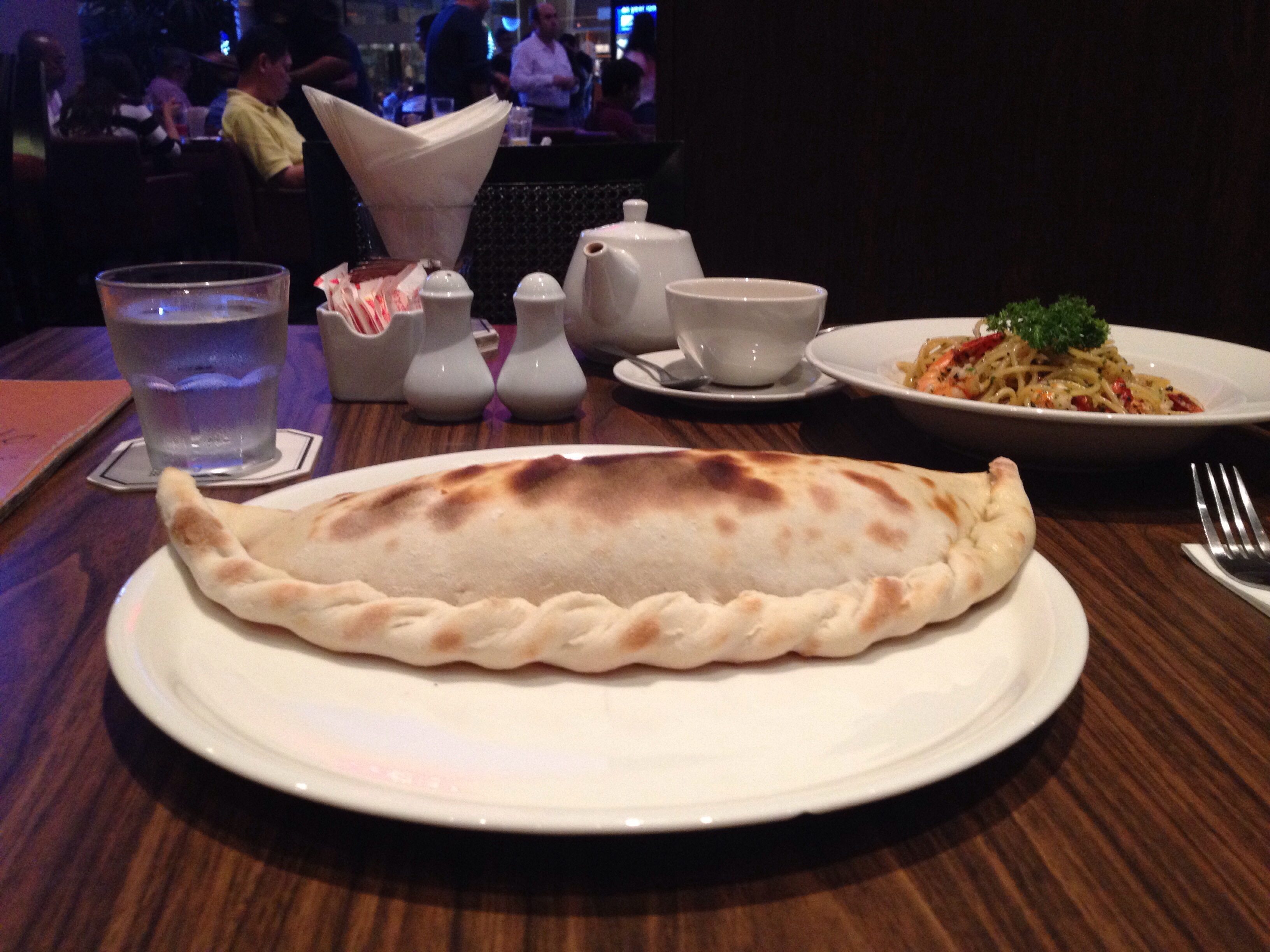 I ordered the Calzone and Hope had the Aglio Olio pasta, again, but this time with shrimp. Now, the Calzone was under the pizza menu so I had completely forgotten that it wasn’t exactly a ‘pizza’. My memory was jolted when it arrived.