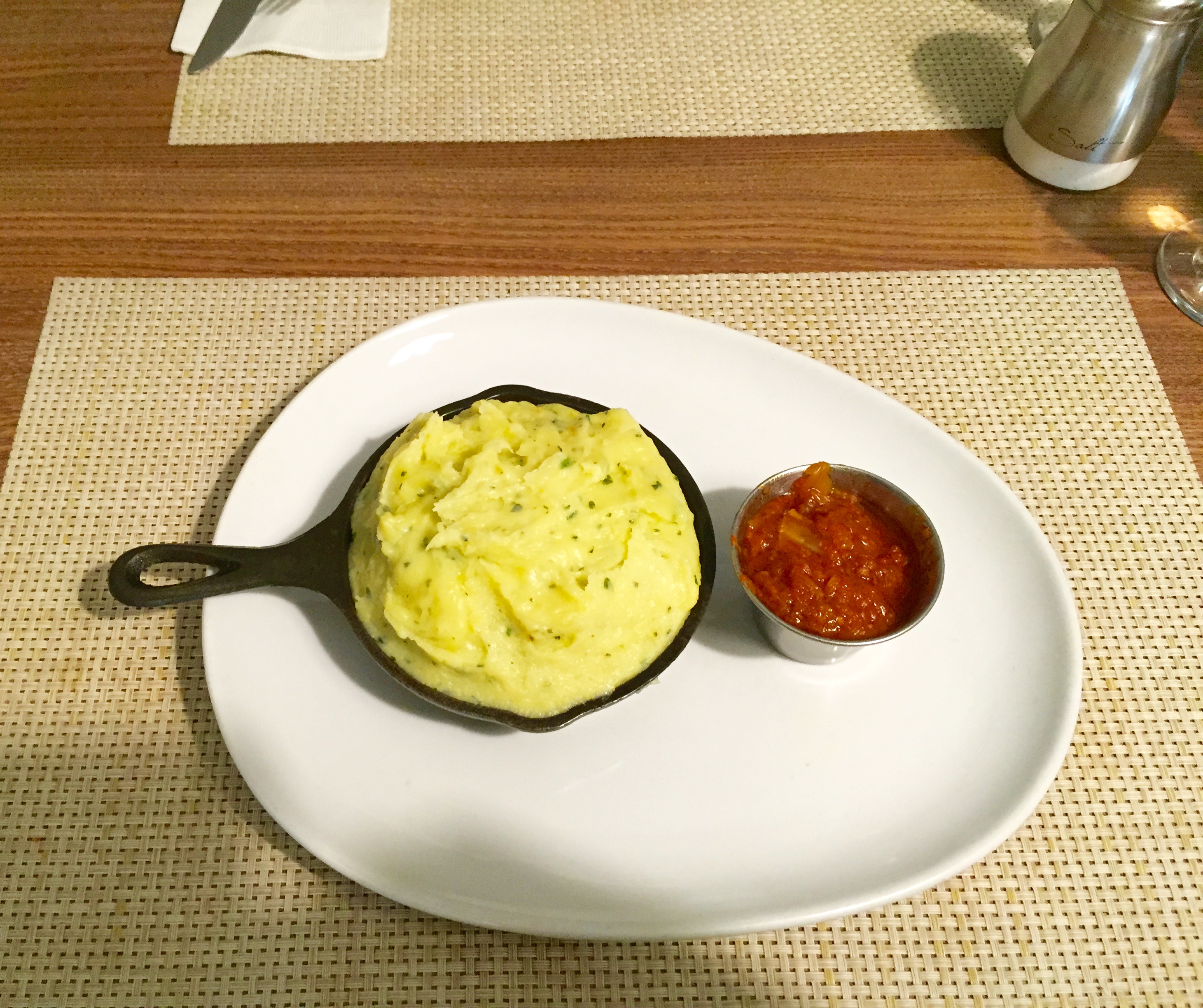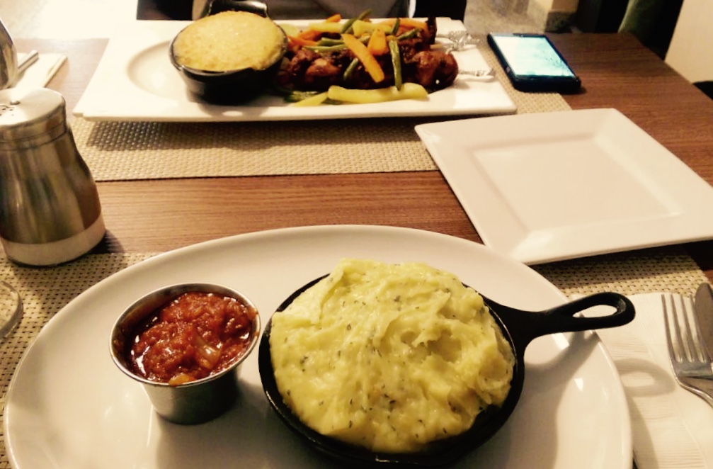 Another thing we definitely noticed was the prices of the dishes. I must tell you, Tulip is not cheap. To save money, we decided to share our food and save money we did.  🙂 We ordered the Mixed grill of king prawn, chicken and giwan ruwa fish served with Tulip Shepherd Pie. We also ordered a side dish of mashed potatoes. I asked for room temperature water as well and it was quite warm.