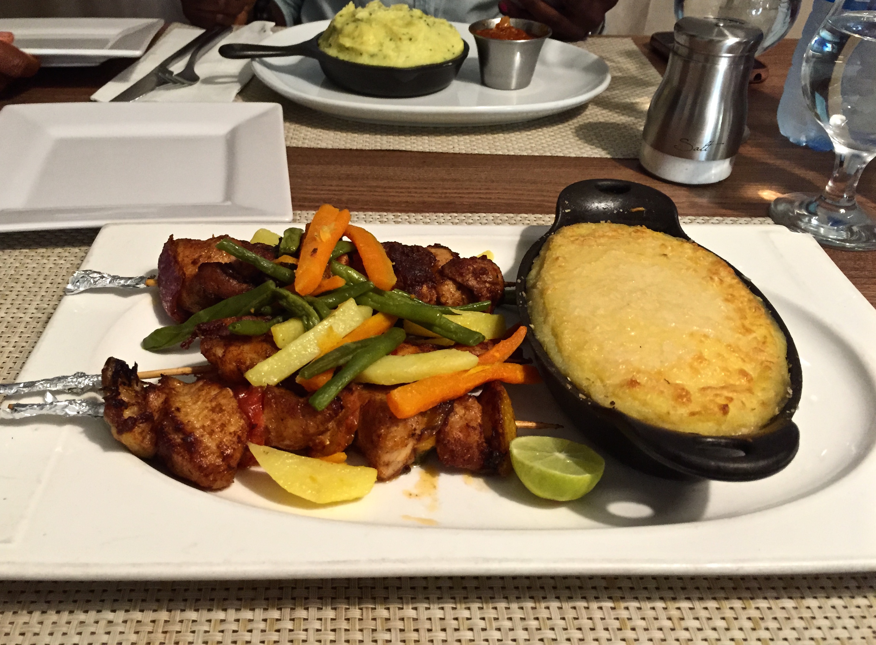 The grill tasted good. It had hints of cinnamon and the spice combination they used made the meal delicious. The steamed vegetables were just plain, nothing to write home about. Doyin liked the potato strips they were served with which I found tasteless. On the kebab stick, there was a slice of grilled lemon and into my mouth it unintentionally went. I have now tried a slice of grilled lemon on your behalf. It was absolutely horrible. Thank God for the the über creamy mashed potatoes; my mouth was happy again. It was so good! Rich, creamy flavour. Yum. 😀