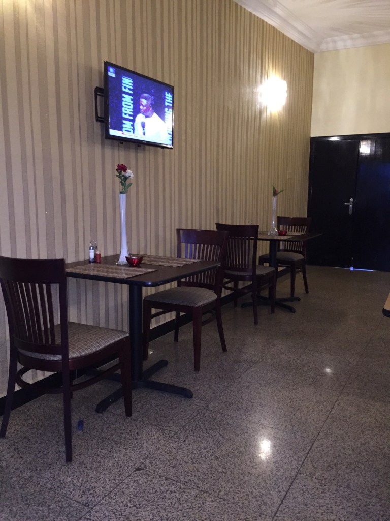 The restaurant serves Chinese, Indian and Nigerian cuisines. I wanted to have shrimps but unfortunately there were no shrimps and there was also no Indian food; something about the Indian chef having an accident. There’s almost always something missing from the menu in restaurants in Nigeria. ๐