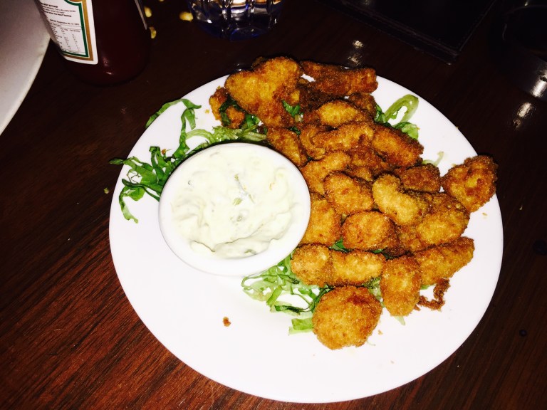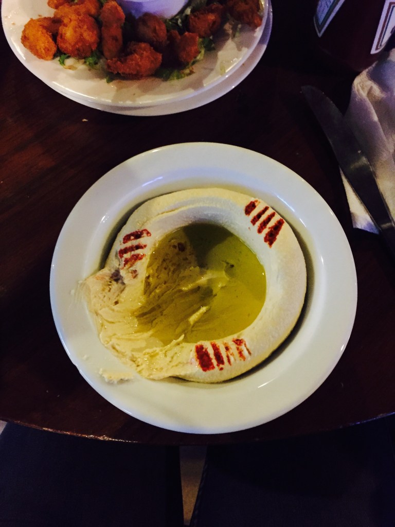 I ordered hummus which comes with Lebanese bread and an appetiser: popcorn shrimp. The popcorn shrimp was the star of lunch, so much so that another order was made. The hummus wasn’t very nice though, I’ve definitely had better elsewhere.
