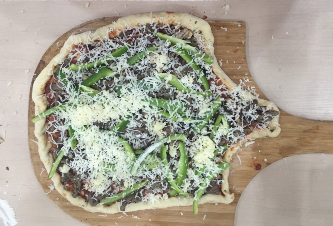 Then it was time to make the ‘Za! We started by making the dough which was the hardest part because of  the kneading. After we had mixed all the ingredients for the dough, I thought we were ready to roll it out and start putting our toppings on it. Then Chef Stone said we had to knead. If not for his help, we may have kneaded for up to 30 minutes. The fun part of this was that we had the liberty of choosing our toppings and crust style. My team chose beef and the thin crust pizza;  there’s just something about seasoning chicken that I didn’t want to be involved with. And thin crust pizzas are classier so… 😀 We also stuffed our pizza crust with cheese and made it rustic looking instead of your regular round shape.