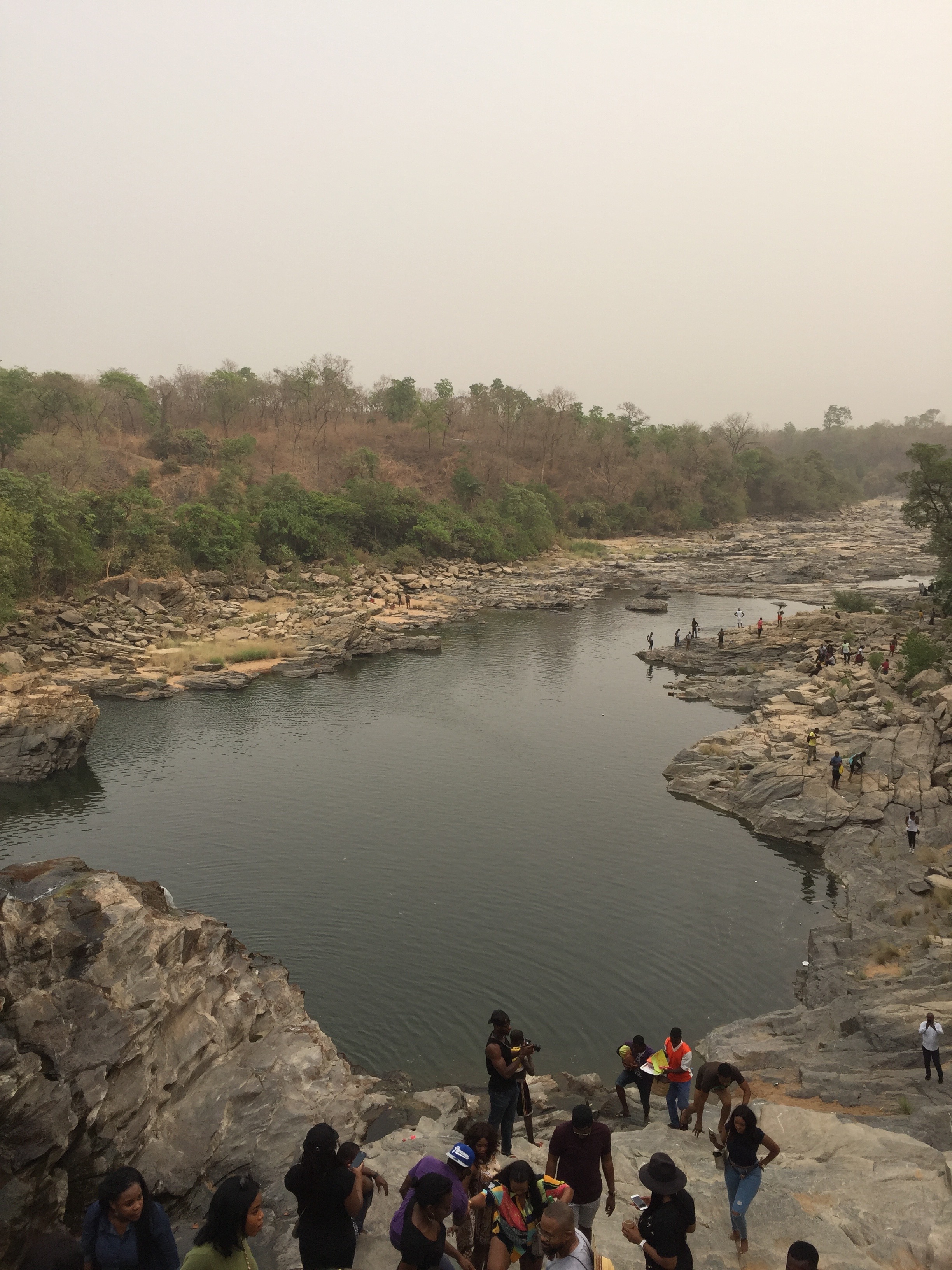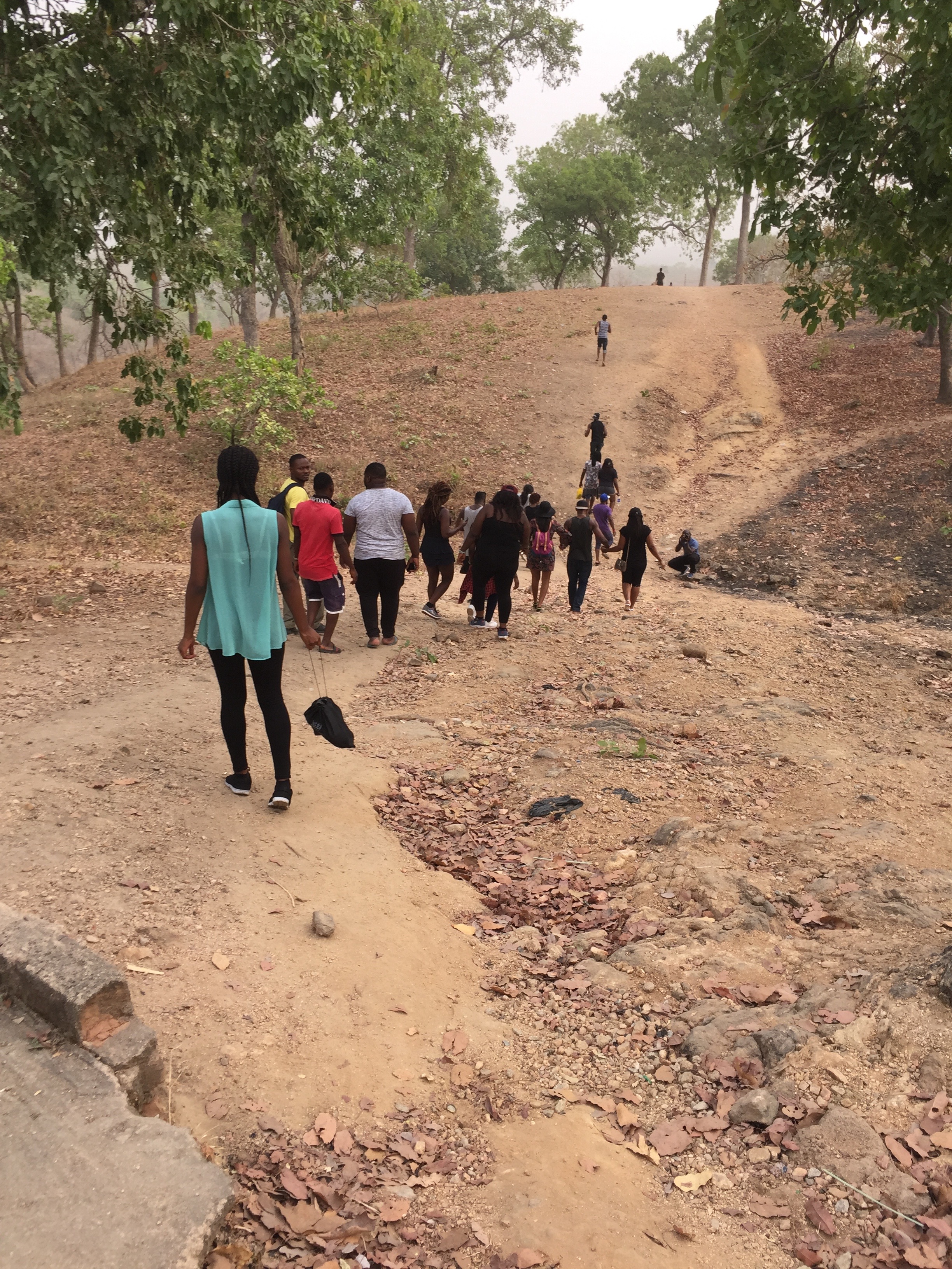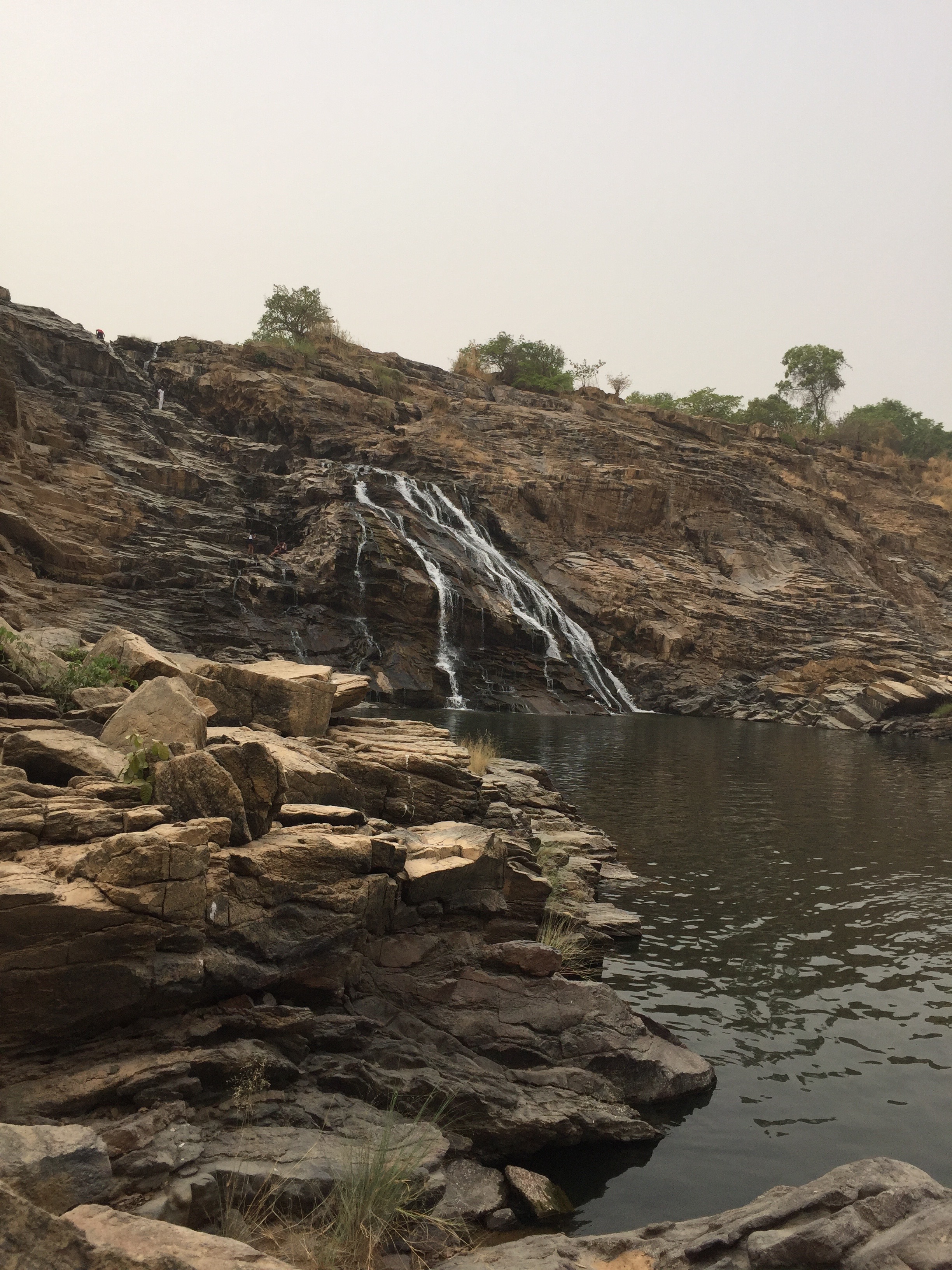 We settled down and left for the waterfalls at about 4pm. Getting to the falls, we had to pay a gate fee. The man at the gate was a very difficult man; he kept us waiting for too long because he wanted more money. I wonder who the ‘gate fee’ really goes to… Finally, we were let in and started the hike down the hill towards the water falls. It was a short but mildly dangerous hike. If it was rainy season, the rocks would have been slippery and inaccessible.