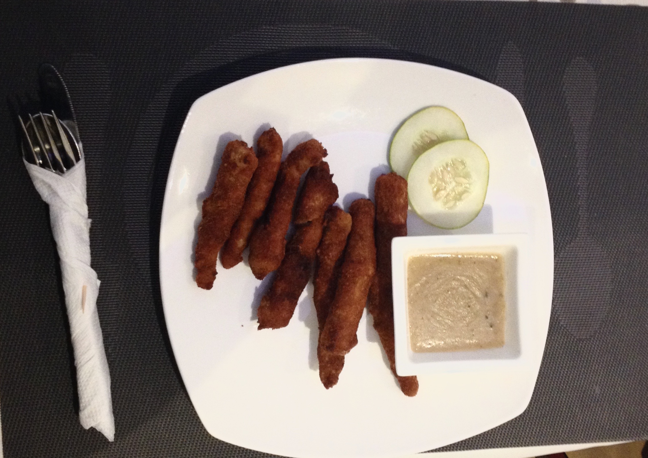 The Fish Fingers took about 15 minutes as promised and looking at them made me think about how fat I was going to get. They were also dry and you could, once again, tell that the oil that was used had been re-used a lot of times. Despite the appearance of the fish fingers, they were soft inside. The sauce it was served with was a bit weird in that I got confused when I tasted it. It had lemon and pepper and still managed to be tasteless. Might I suggest tartar sauce or garlic mayo?
