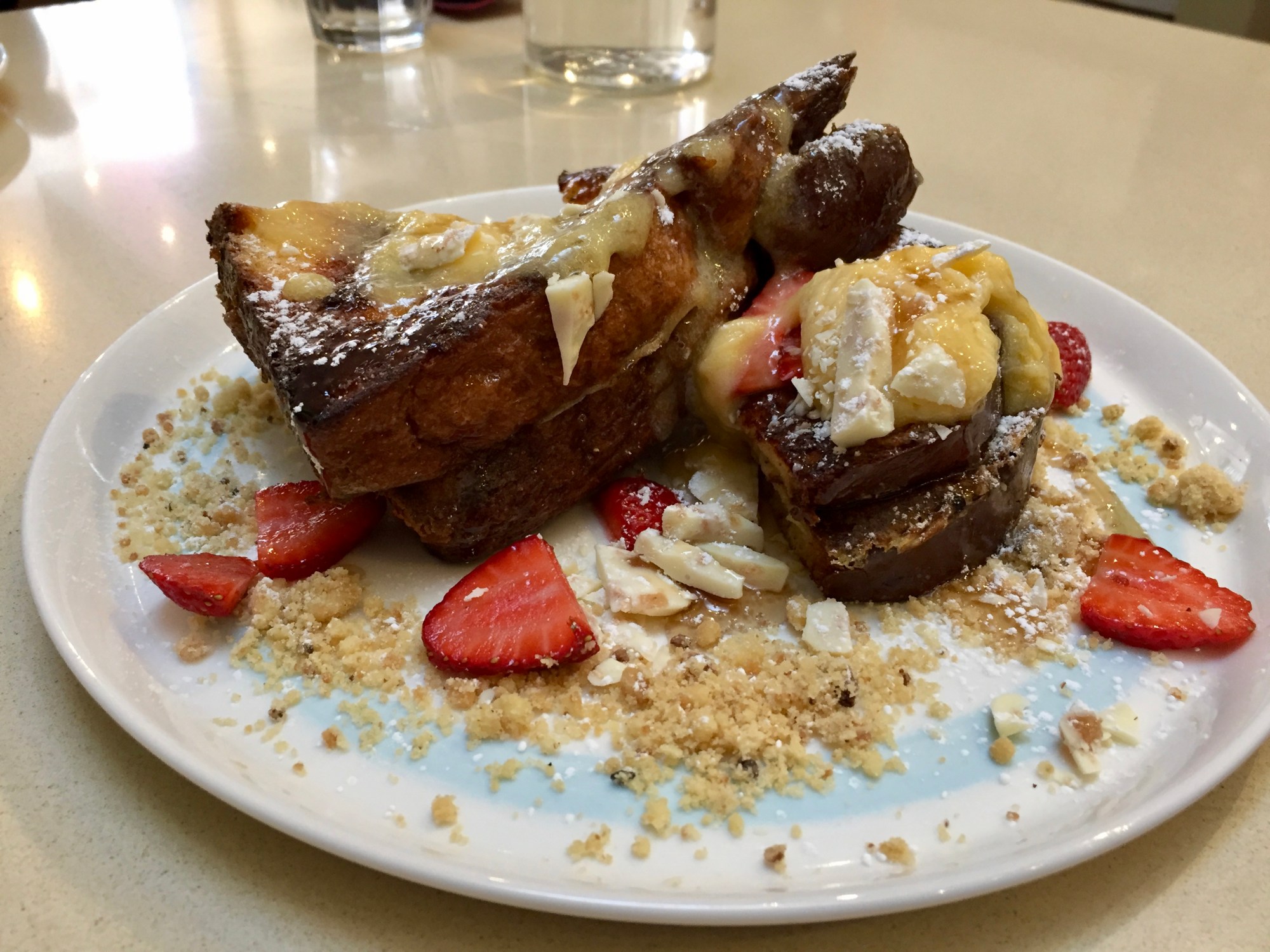 The good news was that I was still able to order something with lemon curd; the French toast (which also came with white chocolate and berries and a biscuit crumb). There was a Nutella option but why get Nutella when you can get lemon curd. If you want Nutella on your French toast, make it yourself at home. Yes, I know I can probably make lemon curd at home too. I didn’t ask you.